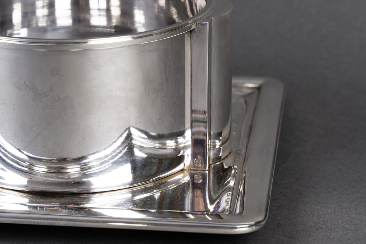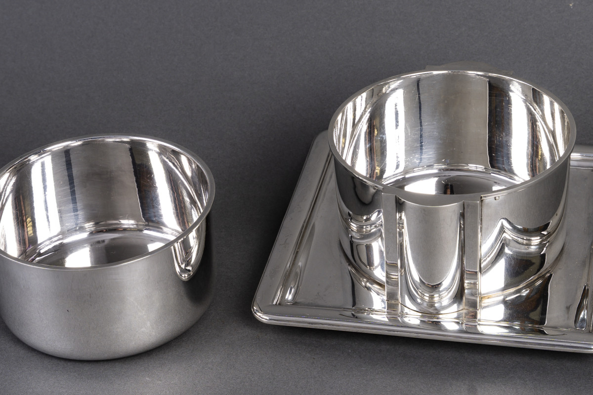 A piece where functionality is combined with a demanding formal reflection, placing this object within a tradition of contemporary silversmithing at the crossroads of art and design.