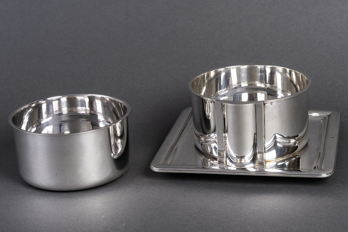 JEAN E. PUIFORCAT - Sauce Boat and Interior in Solid Silver, Art Deco Period