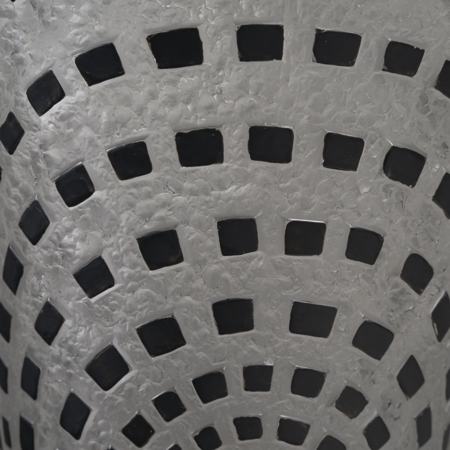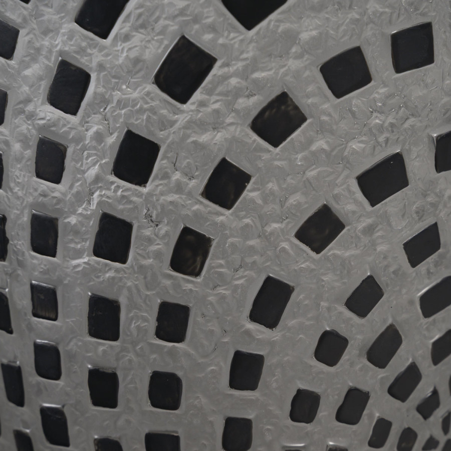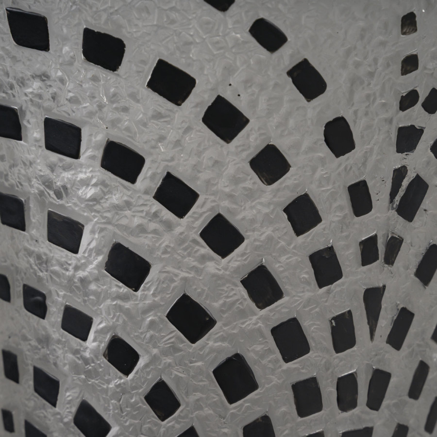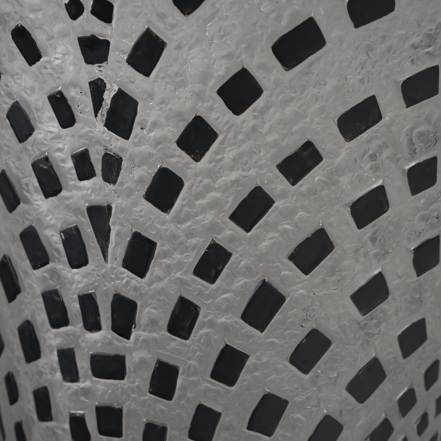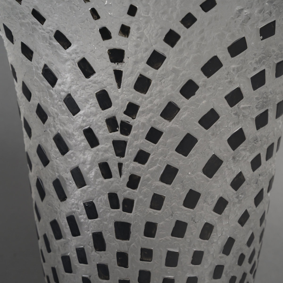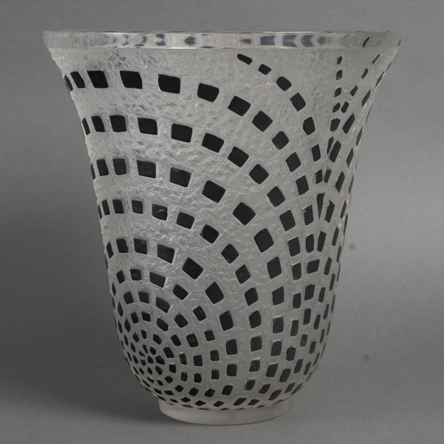Vase dit « DAMIERS » en verre blanc soufflé moulé patiné à damiers noirs. Figure au catalogue de 1937 non repris après 1947